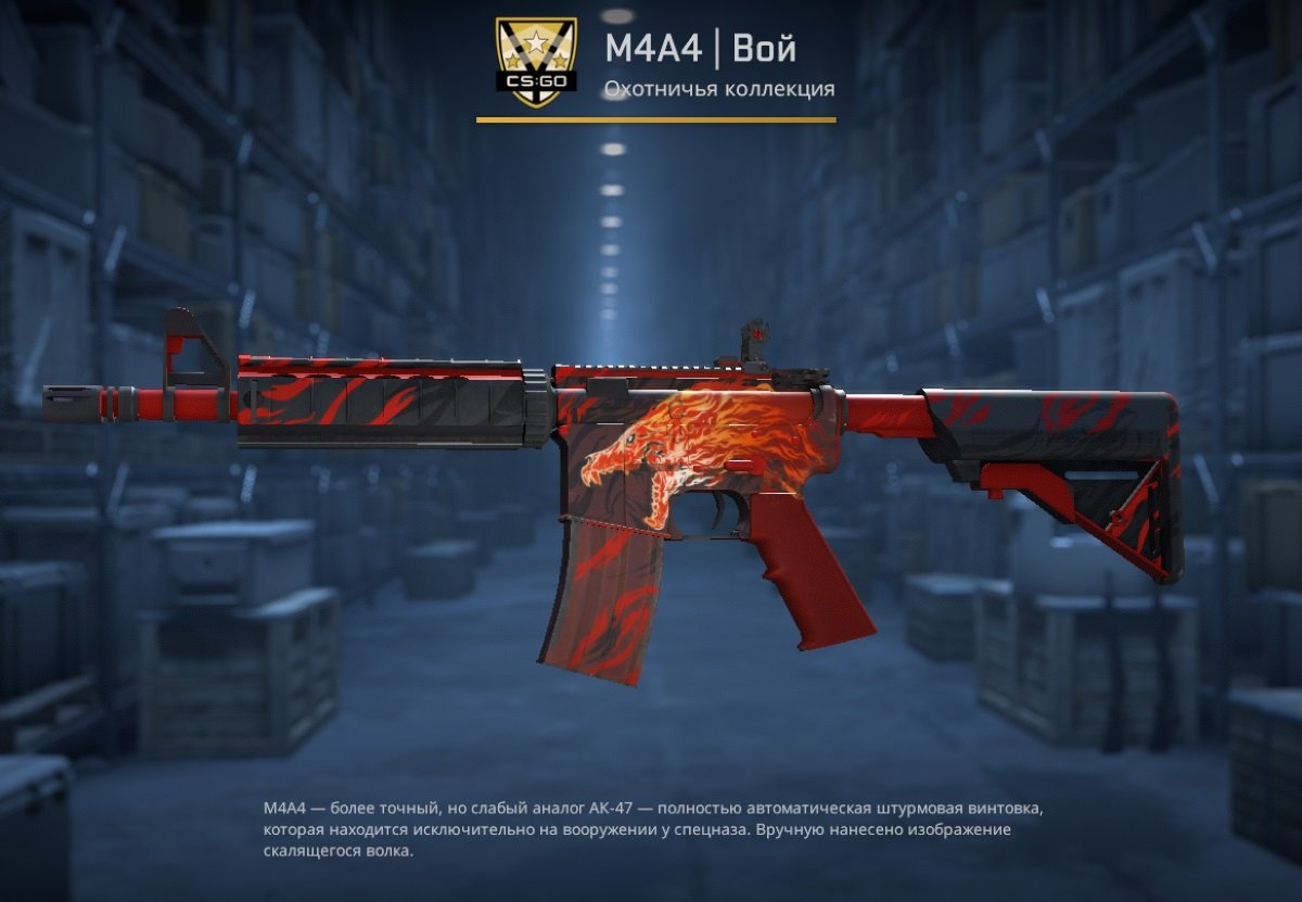 | Контрабандное | Оранжевый цвет | !Контрабандное Существует всего один предмет подобного качества - M4A4 | Howl, который был удален из игры из-за нарушения авторских прав. |